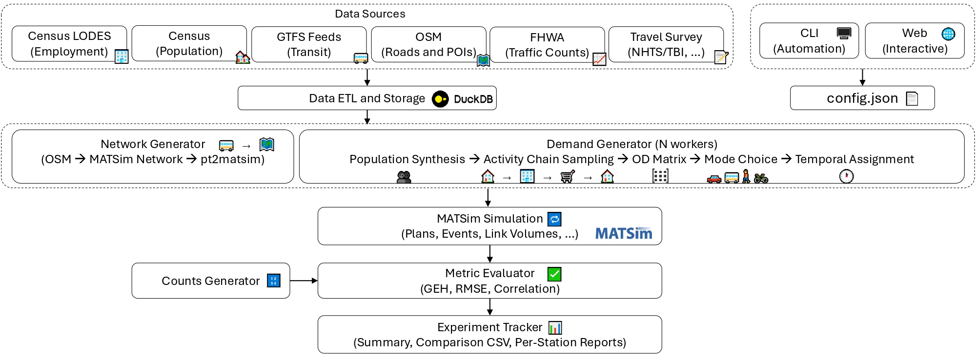 - Multi-Survey Blending – Combines NHTS with regional surveys via a plugin architecture
